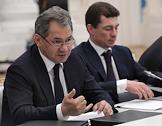 Министр обороны России Сергей Шойгу (слева) и министр труда и социальной защиты России Максим Топилин (справа) во время совещания о ходе выполнения указов президента России, подписанных в день вступления в должность главы государства 7 мая 2012 года. Совещание прошло в Кремле.
