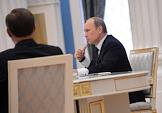 Президент России Владимир Путин (справа) на совещании о ходе исполнения указов президента России от 7 мая 2012 года. Совещание прошло в Кремле.