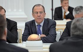 Министр иностранных дел России Сергей Лавров во время совещания о ходе выполнения указов президента России, подписанных в день вступления в должность главы государства 7 мая 2012 года. Совещание прошло в Кремле.