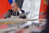 Президент России Владимир Путин во время совещания о ходе выполнения указов президента России, подписанных в день вступления в должность главы государства 7 мая 2012 года. Совещание прошло в Кремле.
