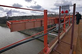 Строительство головного участка с 15 по 58 км. скоростной автомобильной дороги М-11 "Москва - Санкт-Петербург". Один из мостов автодороги через реку.