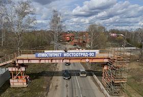 Строительство головного участка с 15 по 58 км. скоростной автомобильной дороги М-11 "Москва - Санкт-Петербург". Один из путепроводов автодороги.
