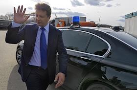 Министр транспорта России Максим Соколов (слева) и председатель правления Государственной компании "Российские автомобильные дороги" Сергей Кельбах (справа) во время пресс-тура на строительстве головного участка с 15 по 58 км. скоростной автомобильной дороги М-11 "Москва - Санкт-Петербург".