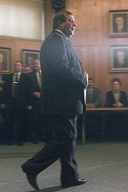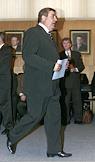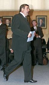 Speraker of the State Duma Gennady Seleznev arrives at the Justice Ministry headquarters to get the registration certificate of the Russian Renaissance Party (PVR) (founded and headed by himself).