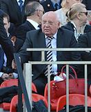 Парад на Красной площади, посвященный 68-й годовщине Победы в Великой Отечественной войне 1941-45 годов. Первый Президент СССР, лидер Российской объединенной социал-демократической партии Михаил Горбачев (в центре) перед началом парада.
