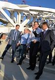 Заместитель председателя правительства России Дмитрий Козак (справа) во время посещения центрального олимпийского стадиона "Фишт", который проектировался и строится с участием британских компаний.