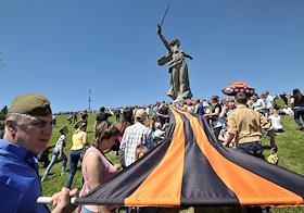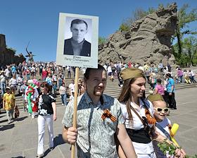 Празднования в Волгограде, посвященные 68-й годовщине Победы в Великой Отечественной войне 1941-45 годов. Памятник-ансамбль "Героям Сталинградской битвы" на Мамаевом куркане.