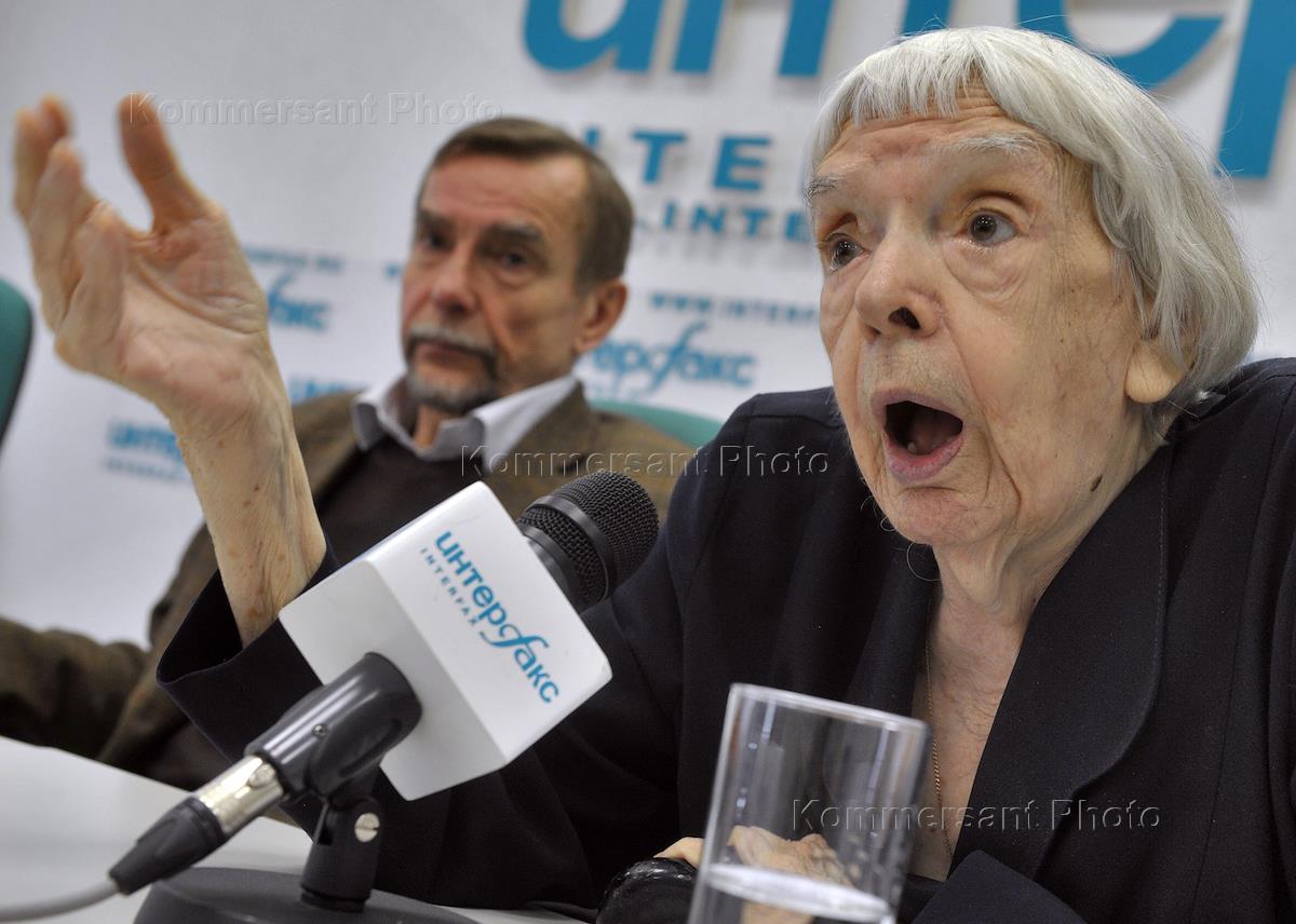 Chairman of the Moscow Helsinki Group Lyudmila Alexeeva (right) during a press conference on the topic "What will happen to the Russian civil society after the prosecutor's checks NGOs?". Press conference was held at central office of the agency "Interfax".