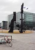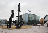 Скульптуры перед зданием Дворца музыки и здание медиаконцерна Sanoma.
