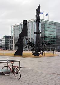 Скульптуры перед зданием Дворца музыки и здания медиаконцерна Sanoma и музей современного искусства Киасма.