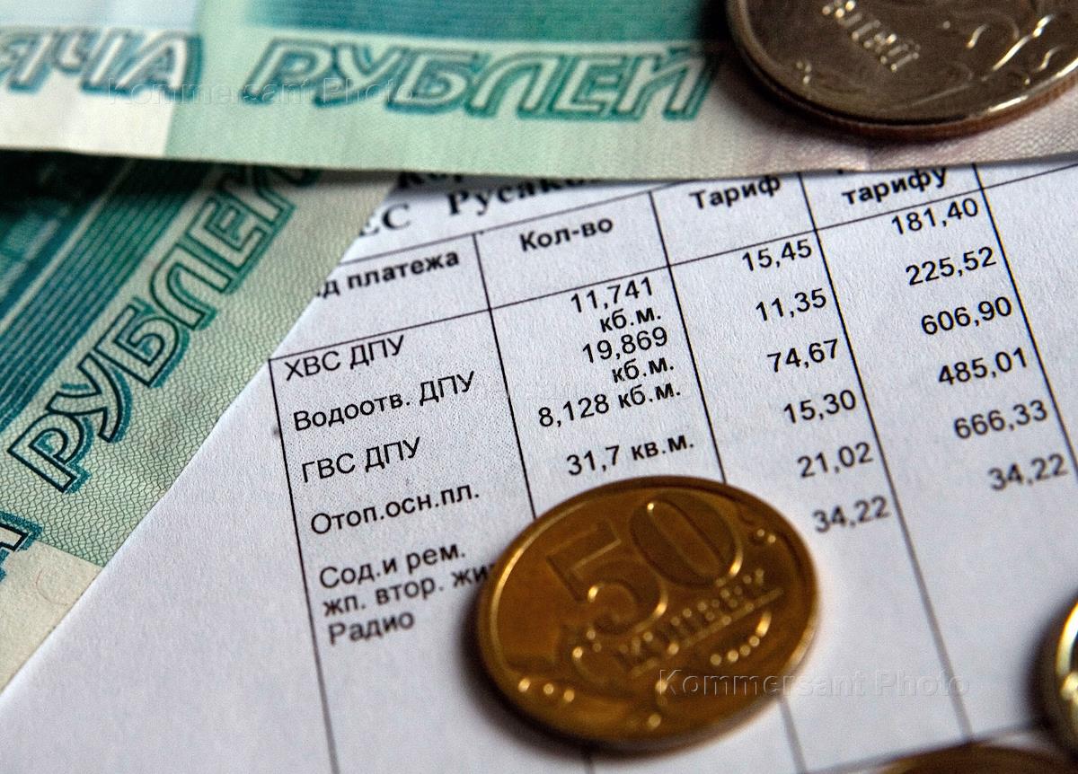 Жанровая фотография. Денежные купюры и монеты на квитанции на оплату жилищно-коммунальных услуг.