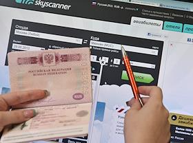 Жанровая фотография. Экран компьютера. На экране сайт skyscanner.ru и ozontravel.ru.