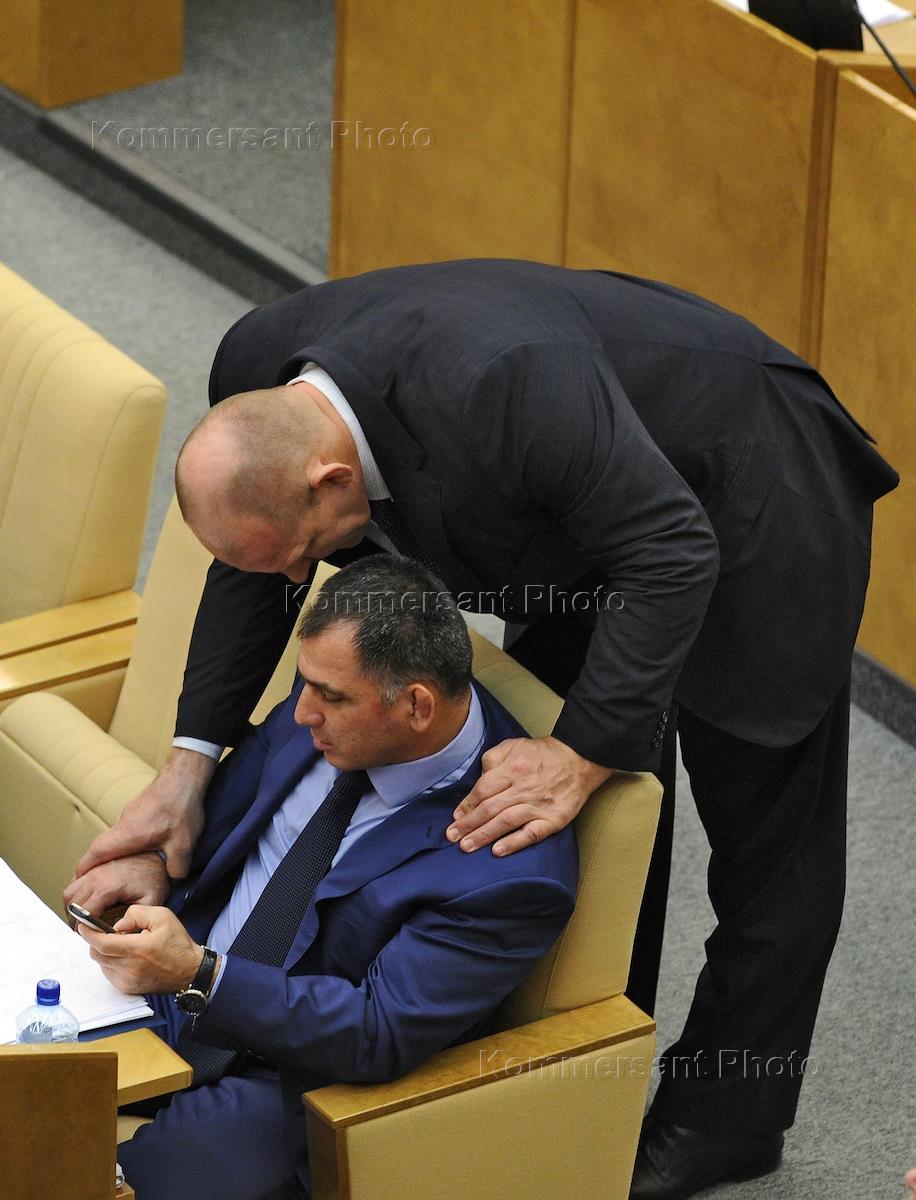 Член комитета Государственной думы России по физической культуре, спорту и делам молодежи Николай Валуев (слева) во время пленарного заседания Государственной думы России.