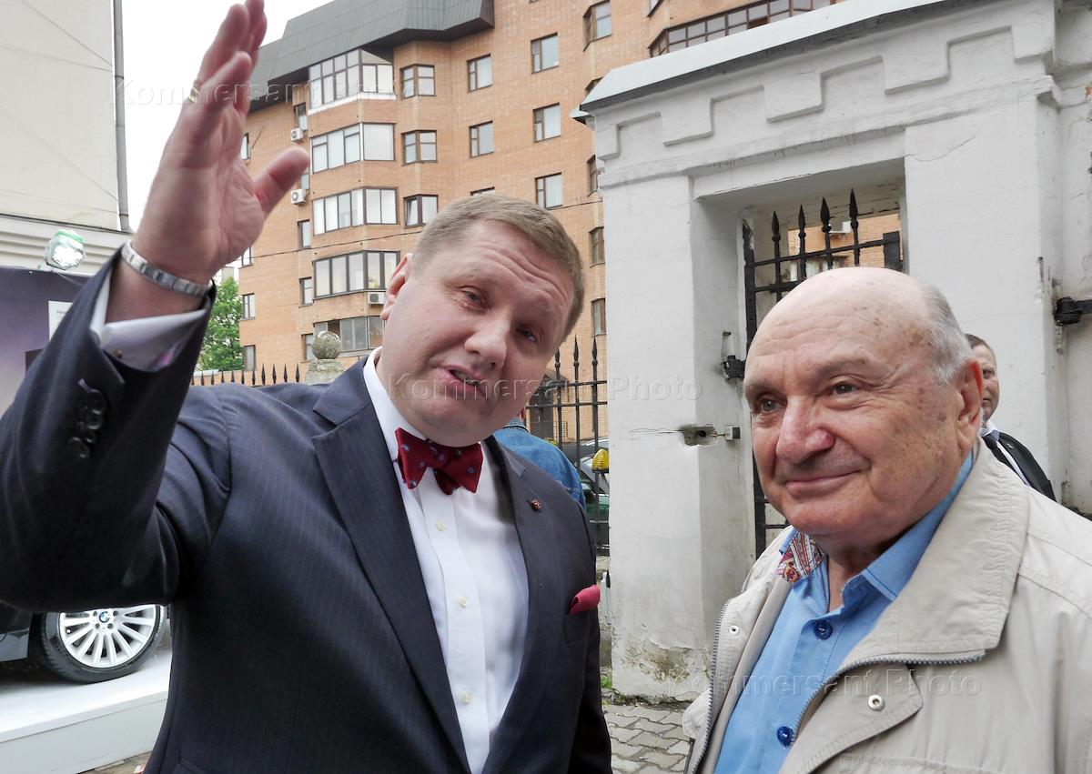 Актер Леонид Ярмольник (слева) и заместитель председателя комитета Государственной думы России по безопасности и противодействию коррупции Александр Хинштейн (справа) на праздновании Дня рождения радиостанции "Коммерсантъ FM".