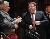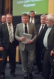 Слева направо: генеральный директор Судебного Департамента Верховного Суда России Александр Гусев, председатель Верховного суда России Вячеслав Лебедев и председатель Совета судей России Дмитрий Краснов после пленарного заседания Совета судей России. Заседание прошло в "Президент-отеле".