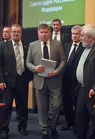 Председатель Верховного суда России Вячеслав Лебедев (в центре) во время пленарного заседания Совета судей России. заседание прошло в "Президент-отеле".
