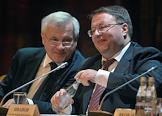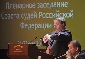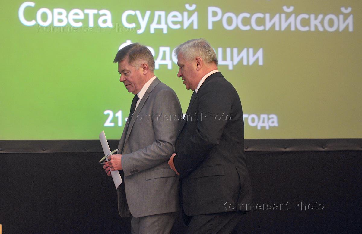 Председатель Верховного суда России Вячеслав Лебедев (справа) во время пленарного заседания Совета судей России. заседание прошло в "Президент-отеле".