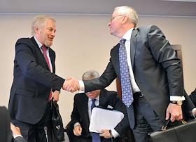 Конференция Ассоциации европейского бизнеса (АЕБ) "Россия; какой быть стратегии в меняющемся мире". Глава постоянного представительства Международного валютного фонда (МВФ) в России Одд Пер Брекк (слева) во время конференции в гостинице "Марриотт Гранд Отель".