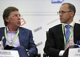 IX Международный форум операторов фиксированной и сотовой связи "Телеком 2013". Заместитель министра связи и массовых коммуникаций России Денис Свердлов (слева) и президент МТС Андрей Дубовсков (справа) во время форума в отеле "Ритц Карлтон".