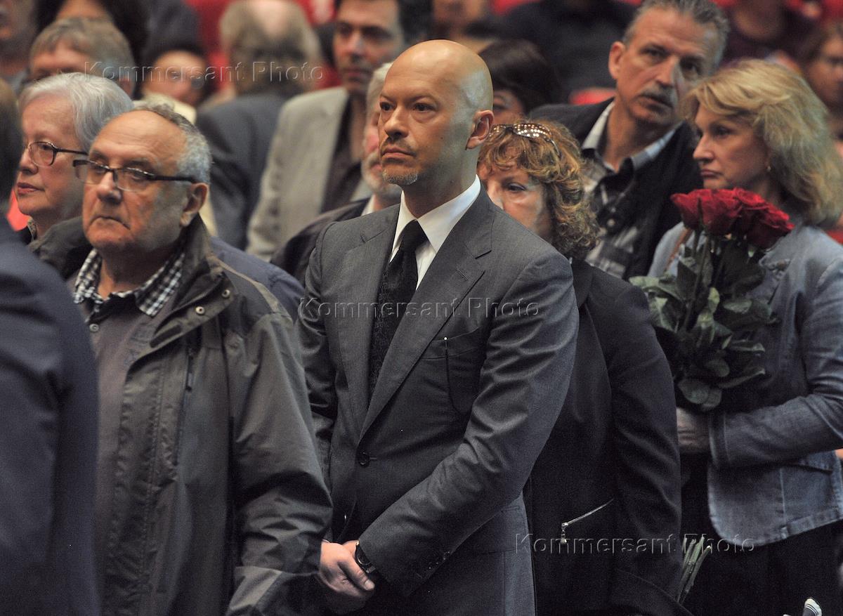 Специальный представитель Президента России по международному культурному сотрудничеству Михаил Швыдкой (в центре) во время гражданской панихиды по режиссеру Петру Тодоровскому в большом зале Центрального дома кино.