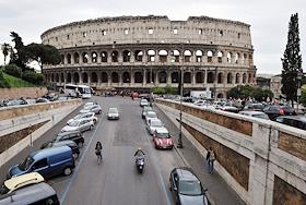 Виды Рима. Группа велосипедистов на одной из улиц города.