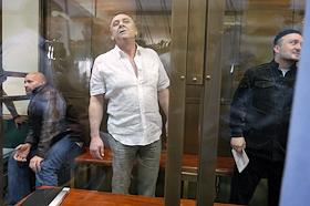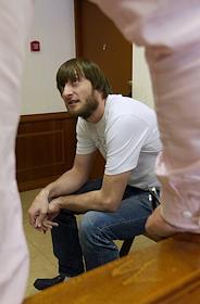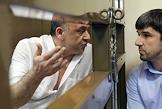 Обвиняемые в убийстве журналистки "Новой газеты" Анны Политковской Лом-Али Гайтукаев (слева) во время первого заседание в рамках судебного процесса в Мосгорсуде.