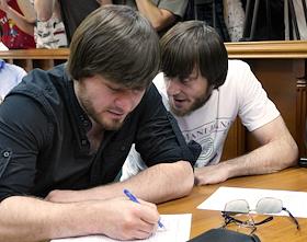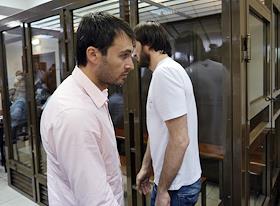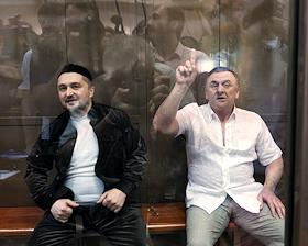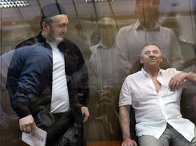 Подозреваемые в убийстве журналистки "Новой газеты" Анны Политковской слева направо: братья Джабраил и Ибрагим Махмудовы во время первого заседание в рамках судебного процесса в Мосгорсуде.