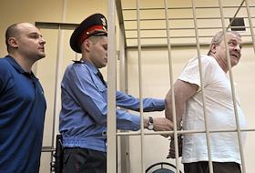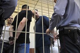 Обвиняемые по делу о похищении сына генерального директора ЗАО "Лаборатория Касперского" Евгения Касперского Николай Савельев (младший) (слева) и Николай Савельев (справа) во время заседания в Хорошевском суде города Москвы.