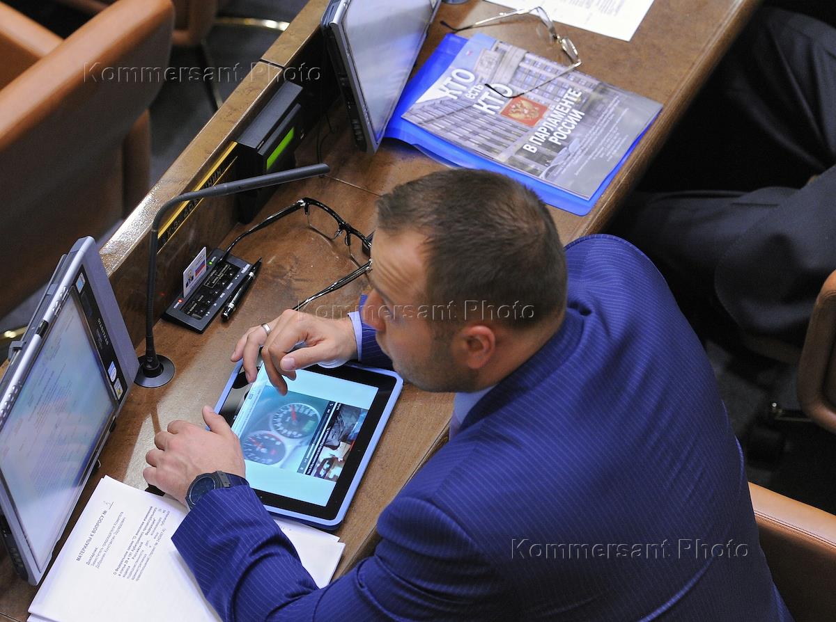 Representative of the Russian Federation Council of the executive body of the Arkhangelsk region, Konstantin Dobrynin at a meeting of the Russain Federation Council.