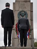 Премьер-министр Норвегии Йенс Столтенберг (слева) и председатель правительства России Дмитрий Медведев (справа) во время церемонии возложения венков к памятнику советскому Воину-освободителю в Киркенесе.
