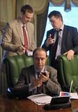 Слева направо: заместитель руководителя пппарата правительства России Андрей Логинов, министр образования и науки России Дмитрий Ливанов и председатель комитета Государственной думы России по конституционному законодательству и государственному строительству Владимир Плигин на заседании правительственной комиссии по координации деятельности Открытого правительства.