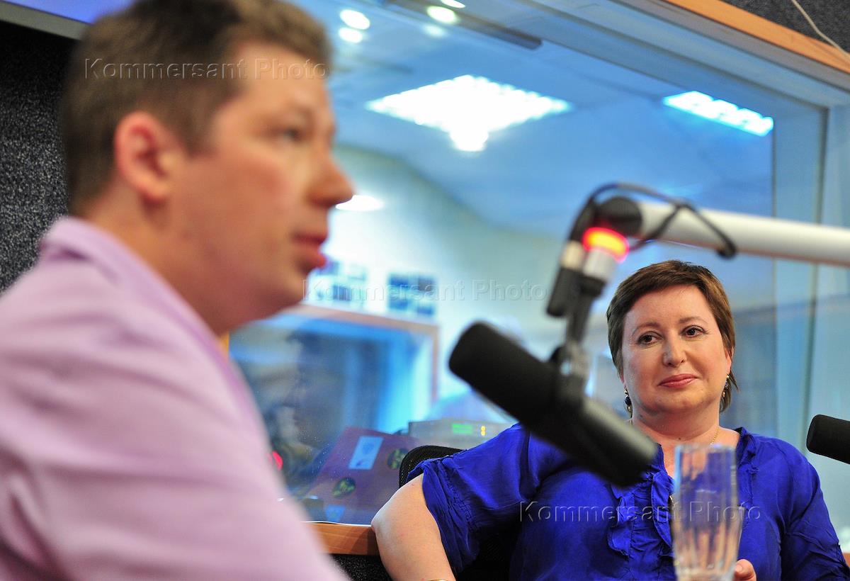 Главный редактор "Коммерсанть FM" Константин Эггерт (слева) и телеведущая Ольга Романова (справа) на радио "Коммерсантъ FM".