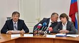 Слева направо: глава администрации города Благовещенска Павел Березовский, глава муниципального образования Владимир Кобелев, председатель комитета по местному самоуправлению, регламенту и депутатской этике Благовещенской городской Думы Евгений Пасканный во время заседания думского комитета по местному самоуправлению и регламенту.