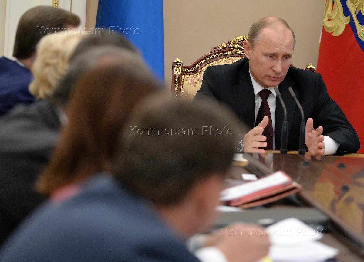 Президент России Владимир Путин во время совещания по планам деятельности федеральных органов исполнительной власти и исполнению майских указов. Совещание прошло в Кремле.