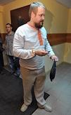 Руководитель националистической организации "Славянский союз" Дмитрий Демушкин, обвиняемый в экстремизме, перед началом слушаний по его делу в мировом судебном участке номер 312 Останкинского района.