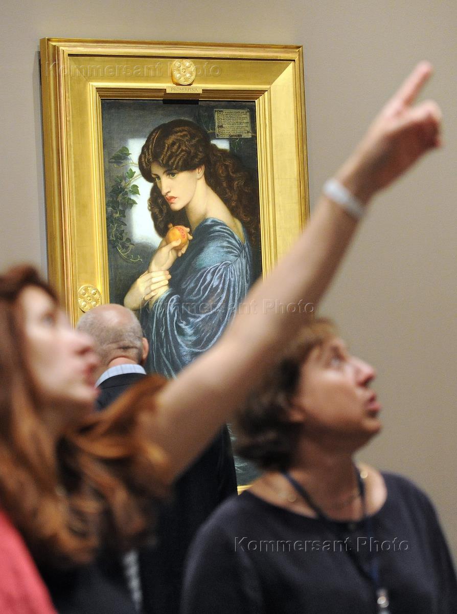 Пресс-показ выставки "Прерафаэлиты: Викторианский авангард" в Государстенном музее изобразительных искусств (ГМИИ) имени А.С.Пушкина. Картина Данте Габриэля Россетти "Прозерпина".