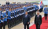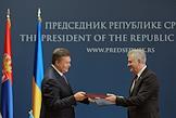 Официальный визит Президента Украины Виктора Януковича в Республику Сербия. Президент Украины Виктор Янукович (слева) и президент Сербии Томислав Николич (справа) во время официальнной церемонии встречи В президентском дворце "Сербия".