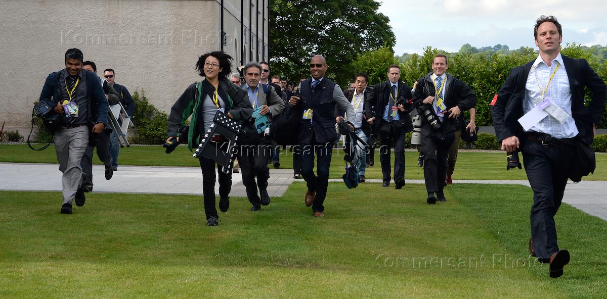 Summit of countries G8. From left to right: European Commission President Jose Manuel Barroso, Japanese Prime Minister Shinzo Abe, German Chancellor Angela Merkel, Russian President Vladimir Putin, British Prime Minister David Cameron, U.S. President Barack Obama, French President Francois Hollande, Canadian Prime Minister Stephen Harper, Chairman of the Ministers Council Italy Republic Enrico Letta and European Council President Herman Van Rompuy during the meeting.