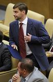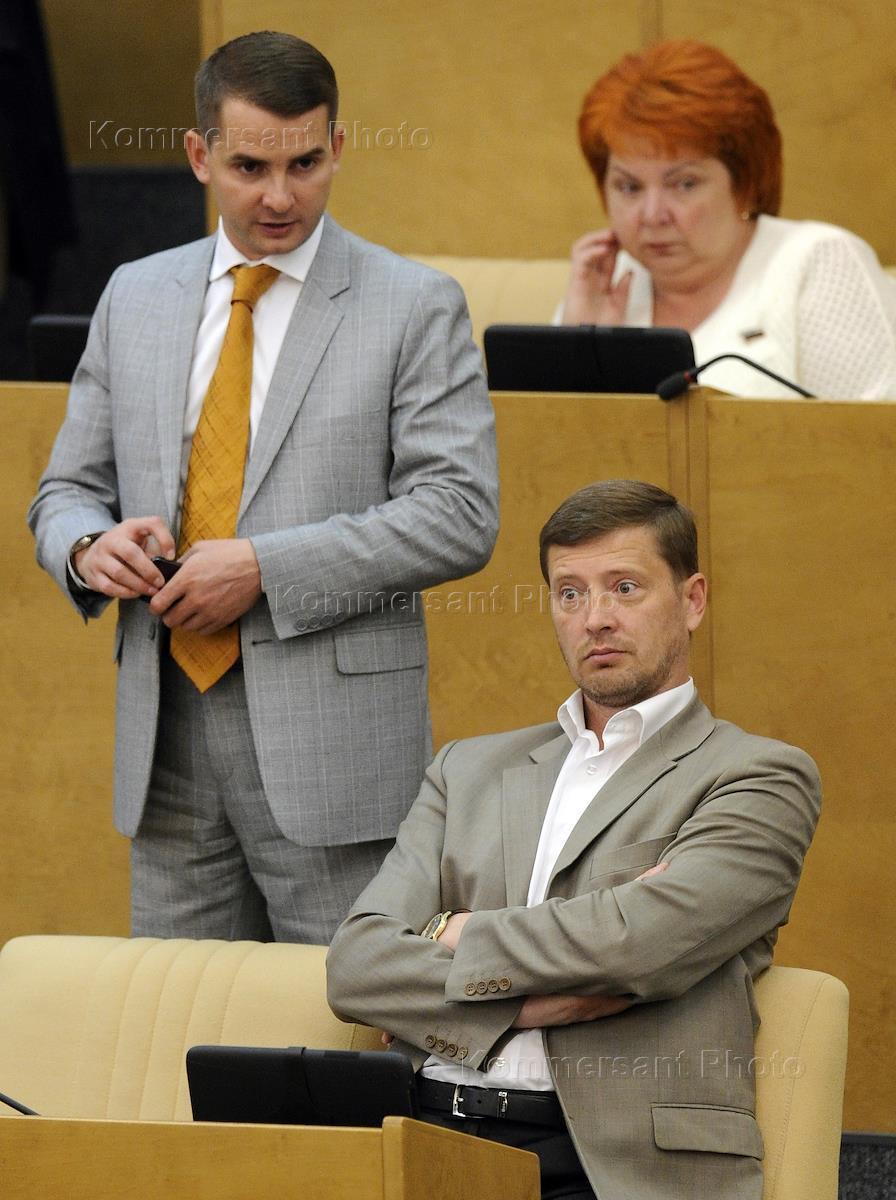 Заместитель председателя комитета Государственной думы России по делам общественных объединений и религиозных организаций Сергей Попов (справа) на пленарном заседании Госдумы.