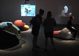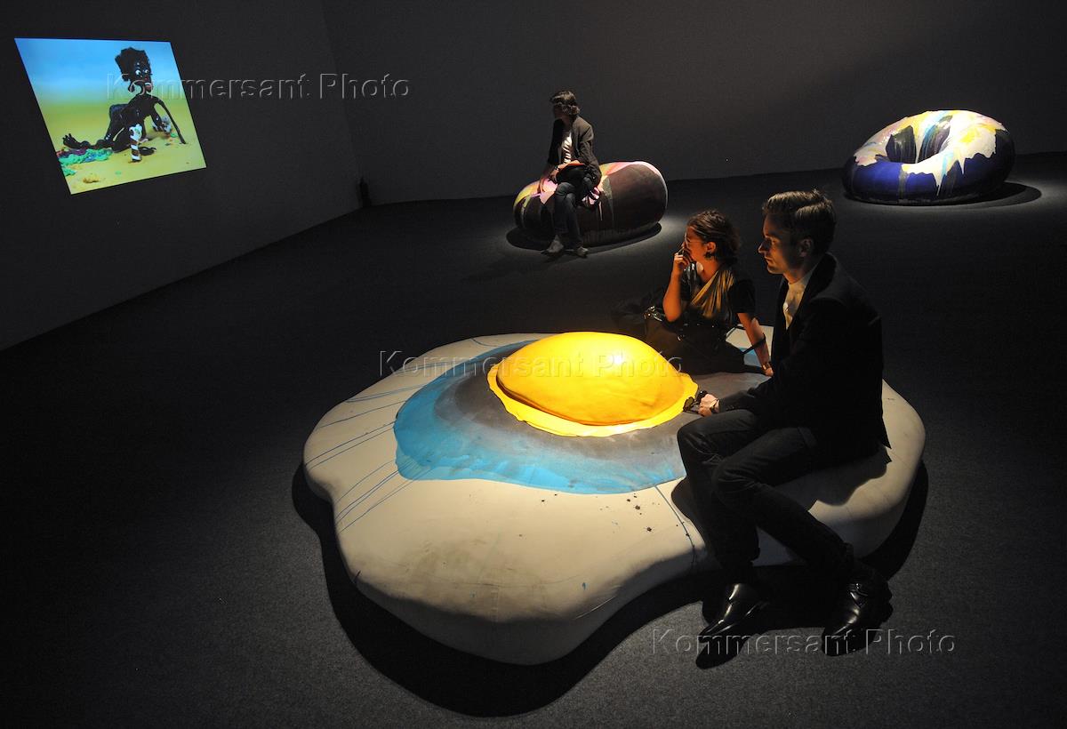Открытие выставки шведской художницы Натали Юрберг и ее партнера и соавтора, берлинского электронщика Ханса Берга "Черный котел", посвященной анимации, в павильоне Центра "Гараж" в Центральном парке культуры и отдыха имени Горького.
