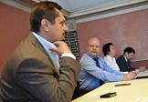 Пресс-конференция Оргкомитета Национально-демократической партии (НДП). Слева направо: глава исполкома Национально-демократической партии (НДП), член политсовета "Русского общественного движения" Владимир Тор (Владлен Кралин), заместитель главы НДП Андрей Кузнецов и председатель оргкомитета РНДП, президент "Русского общественного движения" Константин Крылов на пресс-конференции в Банкетном зале Центрального дома журналиста.