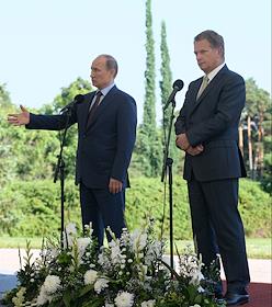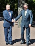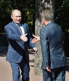 Совладелец группы "Ренова", президент фонда "Сколково" Виктор Вексельберг (слева) во время встречи президента России Владимира Путина (справа) и президента Финляндии Саули Ниинисте в летней резиденции Култаранта под Турку.