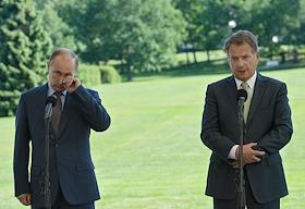 Президент Финляндии Саули Ниинисте во время встречи с президентом России Владимиром Путиным в летней резиденции Култаранта под Турку.
