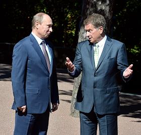 Президент России Владимир Путин (слева) и президент Финляндии Саули Ниинисте 9справа) во время встречи в летней резиденции Култаранта под Турку.