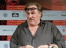 Французский актер с российским гражданством Жерар Депардье на пресс-конференции, посвященной фильму закрытия 35-го Московского международного кинофестиваля "Распутин". Пресс-конференция прошла в Государственном театре киноактера.