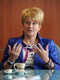 Генеральный директор авиакомпании "Трансаэро" Ольга Плешакова во время интервью.