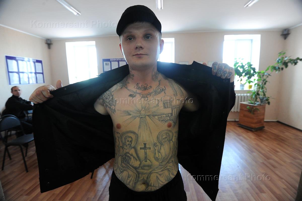 Пресс-тур в одно из старейших учреждений уголовно-исполнительной системы России - Владимирский централ. Исправительная колония строгого режима № 7 ("Тюрьма нового типа"). Татуировка на теле заключенного.