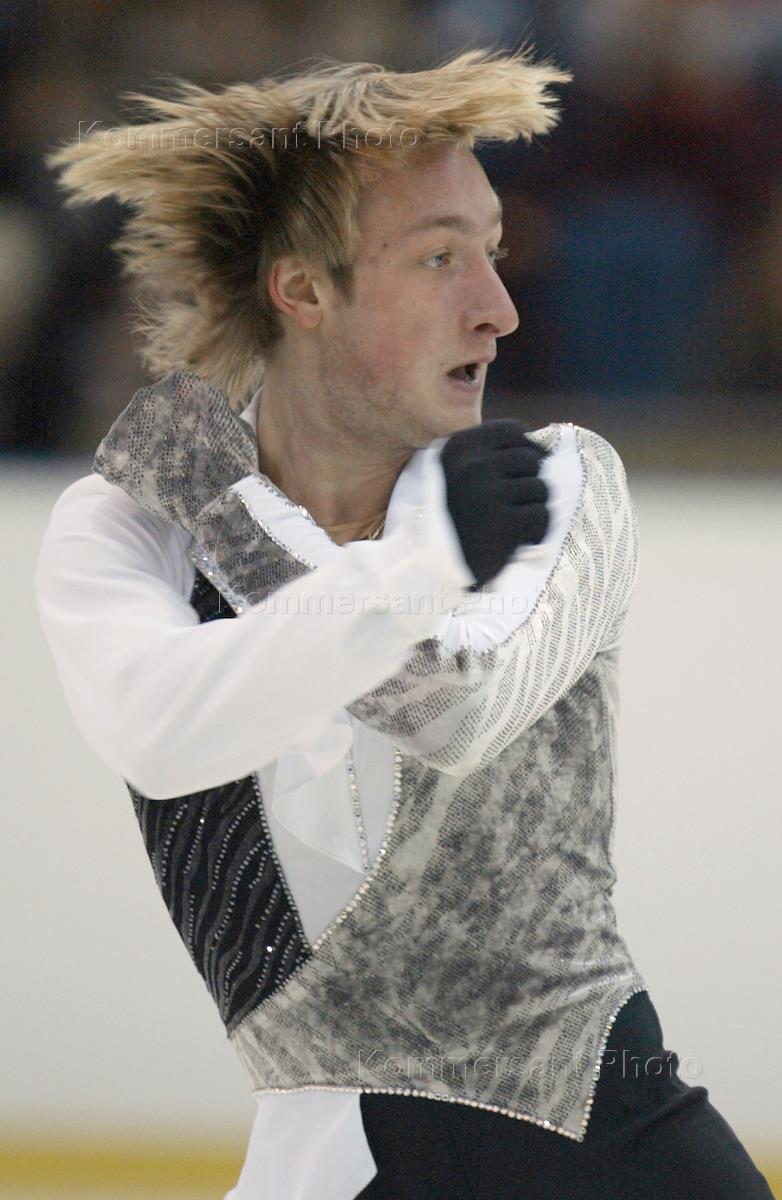 Российский фигурист Евгений Плющенко во время выступления на Международном турнире по фигурному катанию "Гран-При" - Кубок России, ставшем 5-м этапом мировой серии по фигурному катанию. Турнир проходил на Малой спортивной арене "Лужников".