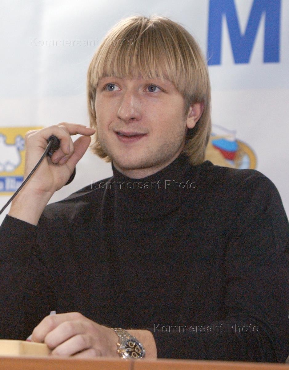 Российский фигурист Евгений Плющенко на пресс-конференции по проведению Международного турнира по фигурному катанию "Гран-При" - Кубок России, который состоится на Малой спортивной арене "Лужников". Пресс-конференция прошла в пресс-центре стадиона "Лужники".