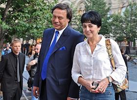 Полномочный представитель gравительства России в высших судебных инстанциях Михаил Барщевский с супругой Ольгой Баркаловой перед началом показа осенне-зимней коллекции модного дома Christian Dior на Красной площади.